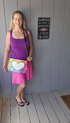 Yesterday I did a little photo shoot with my new crossbody bag and laptop sleeve. It doesn't seem to matter what I put my art on, it just makes me so happy to see the vibrant colors and feel the LOVE I put into all of it.